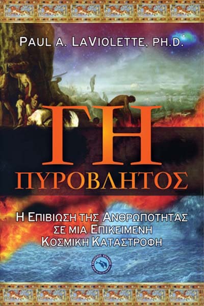 Πυρόβλητος: Πατήστε εδώ για να δώστε μια παραγγελία Στα Αγγλικά: Bear & Co., Rochester, VT, 2005, paperback: 448 pages, ISBN 1-59143-052-4, $20.00 USD "Γη Πυρόβλητος" το video και το CDROM είναι επίσης διαθέσιμα. Πολλοί αρχαίοι μύθοι από όλο τον κόσμο μιλάνε για ολέθριες καταστροφές από φωτιές και πλημμύρες. Αυτοί οι θρύλοι που συναντώνται παντού είναι τόσο ακραίοι που συνήθως απορρίπτονται ως φανταστικές υπερβολές. Στο Γη Πυρόβλητος, ο Paul LaViolette συνδέει "μύθους" με πρόσφατα επιστημονικά ευρήματα στην αστρονομία, γεωλογία, και αρχαιολογία για να επανακατασκευάσει τις λεπτομέρειες των προϊστορικών παγκόσμιων καταστροφών και να εξηγήσει πώς παρόμοιες τραγωδίες θα μπορούσαν να ξανασυμβούν στο άμεσο μέλλον. Υποχρεωμένος από την αποκρυπτογράφηση που έκανε μιας αρχαίας προειδοποίησης κρυμένης στον παραδοσιακό ζωδιακό αστερισμό, ο LaViolette εργάστηκε με πληροφορίες από πολλές επιστημονικές πηγές, συμπεριλαμβανομένων αστρονομικών παρατηρήσεων, μετρήσεων πυρήνα πάγου από τους πόλους και άλλων γεωλογικών δεδομένων για να επιβεβαιώσει ότι ο πυρήνας του Γαλαξία μας εξεράγη απελευθερώνοντας μπαράζ κοσμικών ακτίνων που έφθασαν κοντά στο τέλος του τελευταίου παγετώνα. Αυτό το μπαράζ προκάλεσε το ηλιακό σύστημα να τυλιχθεί σε ένα πυκνό νεφέλωμα που οδήγησε σε περιόδους επίμονου σκότους, παγερής ψύχρας, σφοδρών ηλιακών καταιγίδων, καυτής ζέστης και πλημμυρών σαν βουνά |