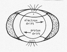 Figure 3.19. The inner Van Allen radiation belt. Arrows indicate the directions of particle drift which collectively constitute the ring current.