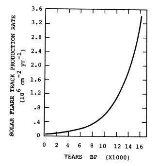 It is significant that the conclusion reached by Zook et al. on the basis of lunar rock studies parallels that which I independently arrived at on the basis of the analysis of glacial ice dust and theoretical considerations regarding the response of the Sun to the accretion of elevated amounts of nebular material. Zook et al. (1977, p. 120) speculate that the elevated solar flare activity around 16,000 BP may somehow have been associated with the retreat of the continental ice sheets at the end of the last glaciation, although they are not able to suggest a mechanism by which terrestrial temperature would correlate with solar flare activity. The GEH suggests such a mechanism, namely the influx of nebular material into the Solar System could have caused terrestrial heating through an interplanetary greenhouse effect and also could have activated the Sun through material accretion; see Section 3.3.2 (pp. 185, 194) and Subsection 3.3.4 (p. 211).